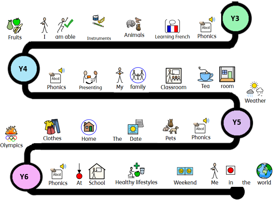 French, in the National Curriculum, is only compulsory to be taught in Key Stage two. Below is the language journey that children go on at Hallbrook.